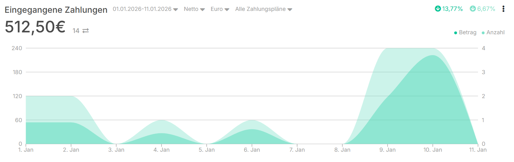 A.: 512,50 € Umsatz in nur 11 Tagen mit Mini-Produkten zwischen 19 und 49 €